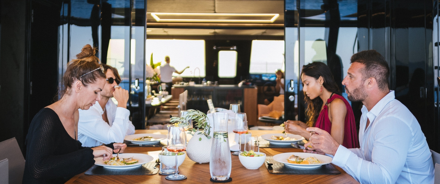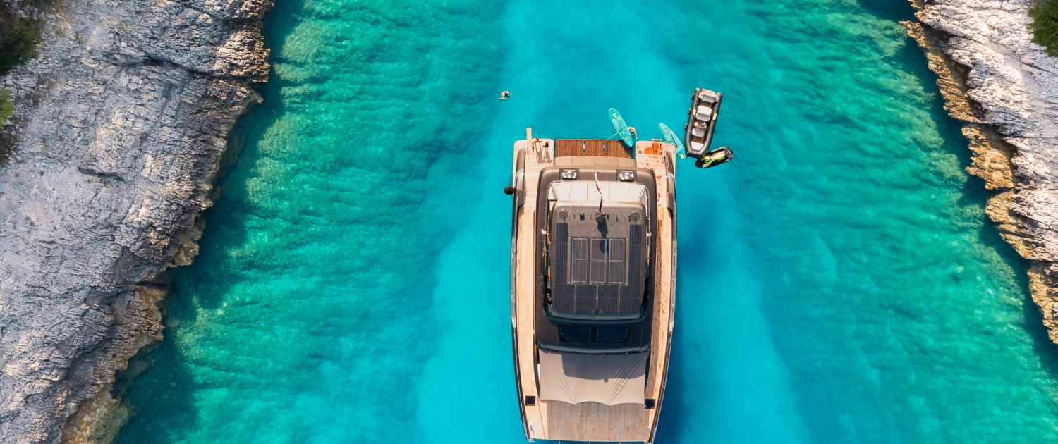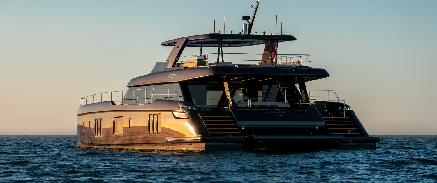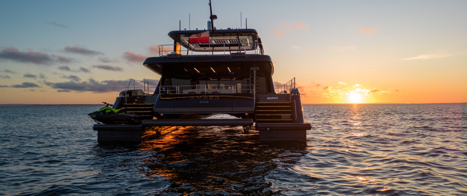 Charter Sunreef 70 POWER in Croatia. The 70 Sunreef Power continues the legacy of Sunreef Yachts’ seaworthy motor yachts. The Sunreef 70 AMBER ONE is an all-around sailing leisure yacht ideal for exclusive getaways and adventures. This model boasts a combination of exterior and interior areas easily flowing into one another. A clever bridge deck and superstructure design allow for a superior level of comfort onboard whereas the generous teak use, high bulwarks, and graceful lines underscore her modern style with a classic edge. The vast main deck saloon of the 70 Sunreef Power blends seamlessly with the aft cockpit, creating a large, semi-open dining and sunning area. The skylight, panoramic glazing, and wide sliding door let plenty of sunshine in. The 70 Sunreef Power boasts a large bow terrace for lounging protected from sun and wind. The aft cockpit provides an alfresco dining space close to the water as well as a great spot to enjoy water sports with easy access to toys and PWCs.